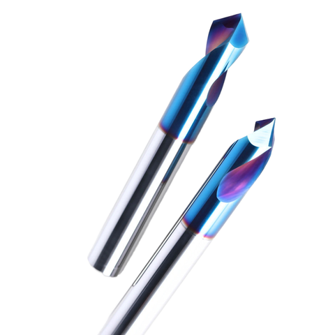 Fresa de chaflán de carburo HRC65 de 90 ° CNC aleación de tungsteno 2 flautas fresa de extremo OEM metal duro personalizable azul Nano recubierto Taladro